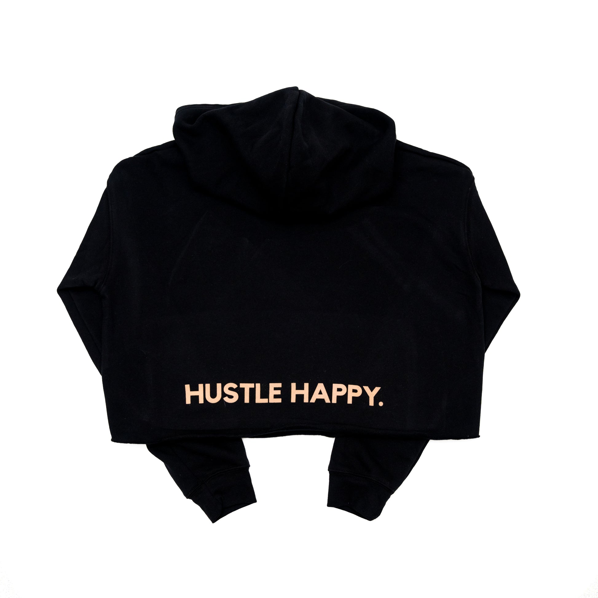 - Screen printed "HUSTLE HAPPY" on lower back in pink